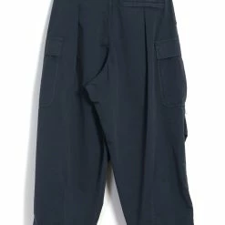 BENNY is a super wide cut pair of trousers. Inspired by vintage military snow over trousers. To create the volume BENNY is featuring large darts at waist, bottom hem and knees. It comes with large side pockets, a back pocket, a heavy cotton ribbon belt and ribbon drawstrings at the bottom hem.