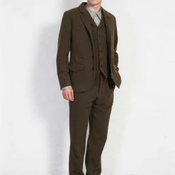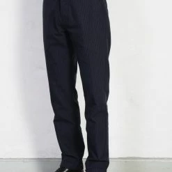 The fabric is a combination of a Herringbone weave and Pinstripes. It is made of 100% cotton with a pin striped pattern. It is classic and has strong traditions within men’s clothing with references to power and wealth. Pin stripes origins from uniforms worn by those who worked in banks, for the purpose of easily being recognized and not mistaken for being robbers or other intruders. In this case the colour gives the classic pinstripe a new more relaxed twist.
