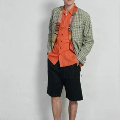 REMY is a combination of a Kakashi style shirt / jacket and a workwear overshirt. It comes with a Japanese inspired front, made of a colourful jacquard weave contrast African inspired fabric. It has a straps closure system, two patch-on flap upper chest pockets, two lower side seam pockets and cuffs.