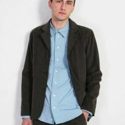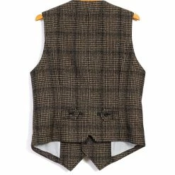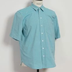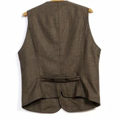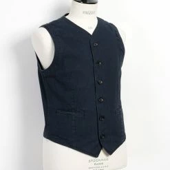 Collarless penny shirt with concho buttons. The shirt is made of a gauze linen herringbone fabric, giving it a rugged vintage feel.